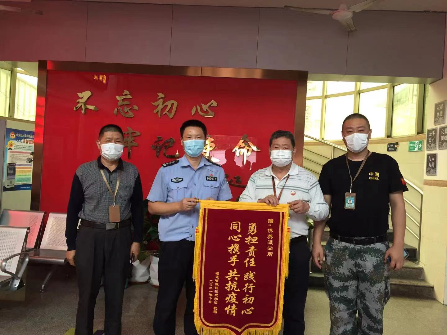 为推进警校共建共育,共建和谐平安校园,今天上午(11月2日),常务副校长蔡添寿、校长助理邱增和、保卫处黄岩副主任以及共青团委共同出席拜访侨英派出所王教导员,双方围绕共建平安校园进行讨论,一致认为要充分发挥各自优势和,加强对学校学生的法制教育和防诈骗教育,与时俱进,开拓创新,以警风促校风,全力打造平安和谐文明的校园环境,切实把共建活动引向深入,为促进社会的和谐、文明、平安做出应有的贡献!